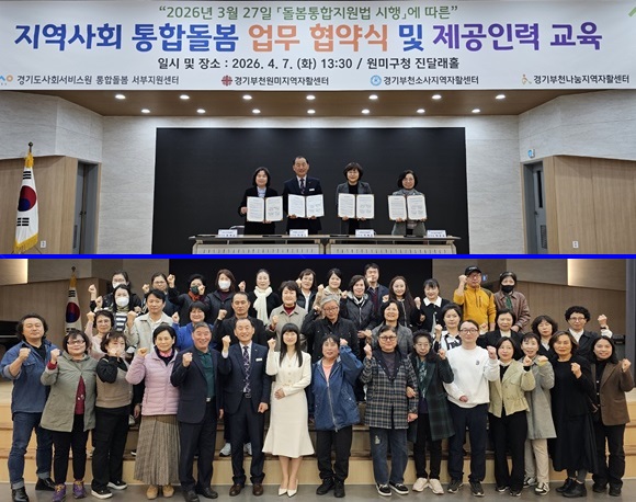 ºÎõ¿ø¹ÌÁö¿ªÀÚȰ¼¾ÅÍ´Â Áö³­ 7ÀÏ ¿ÀÈÄ ¿ø¹Ì±¸Ã» Áø´Þ·¡È¦¿¡¼­ °æ±âµµ»çȸ¼­ºñ½º¿ø ÅëÇÕµ¹º½ ¼­ºÎÁö¿ø¼¾Å͸¦ ºñ·ÔÇÑ ºÎõ³ª´®Áö¿ªÀÚȰ¼¾ÅÍ, ºÎõ¼Ò»çÁö¿ªÀÚȰ¼¾ÅÍ µî Áö¿ª À¯°ü±â°üµé°ú ¡®Áö¿ª»çȸ ÅëÇÕµ¹º½ Çù·Âü°è ±¸ÃàÀ» À§ÇÑ ¾÷¹« Çù¾à¡¯À» ü°áÇß´Ù.