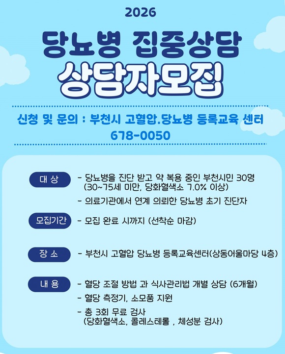 °ü·Ã ¹®ÀÇ´Â ºÎõ½Ã °íÇ÷¾Ð¡¤´ç´¢º´ µî·Ï±³À°¼¾ÅÍ(¢Ï032-678-0050)³ª ȨÆäÀÌÁö(¤ý¹Ù·Î °¡±â Ŭ¸¯)¿¡¼ °¡´ÉÇÏ´Ù.