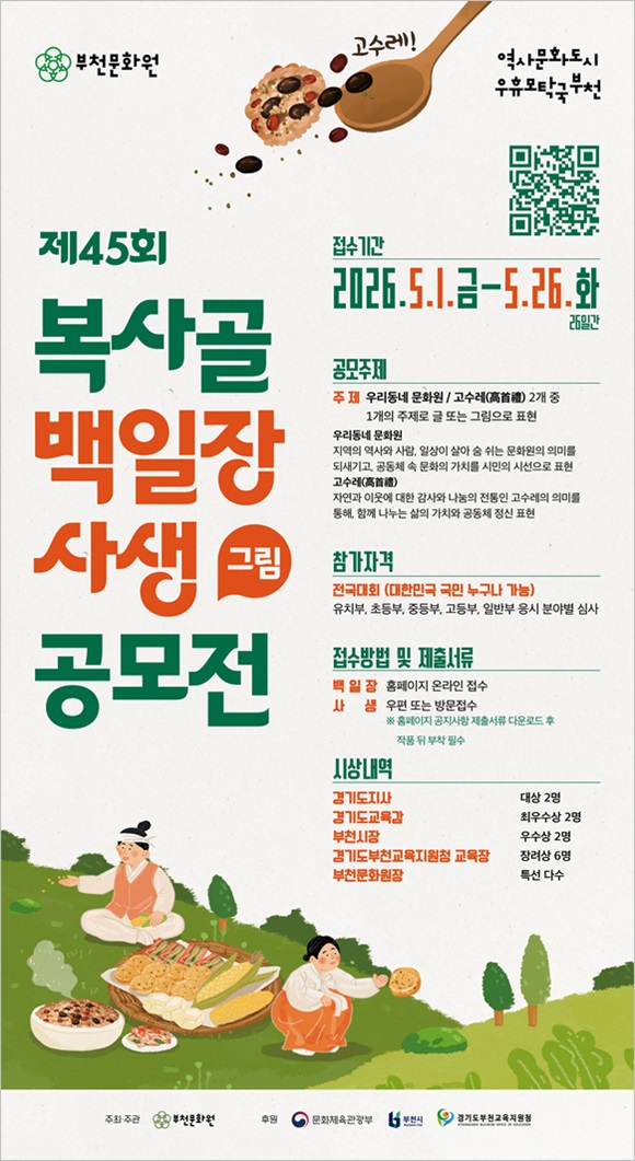 ºÎõ¹®È­¿ø(¿øÀå ±Ç¼øÈ£)ÀÌ ¼³¸³ 60ÁÖ³âÀ» ±â³äÇØ Áö¿ª ¹®È­ÀÇ °¡Ä¡¸¦ ½Ã¹Î°ú °øÀ¯Çϰí ÇâÅ乮ȭÀÇ Áö¼Ó°¡´ÉÇÑ ±â¹ÝÀ» ¸¶·ÃÇϱâ À§ÇØ ¡®Á¦45ȸ º¹»ç°ñ ¹éÀÏÀ塤»ç»ý(±×¸²) °ø¸ðÀü¡¯À» °³ÃÖÇÑ´Ù.