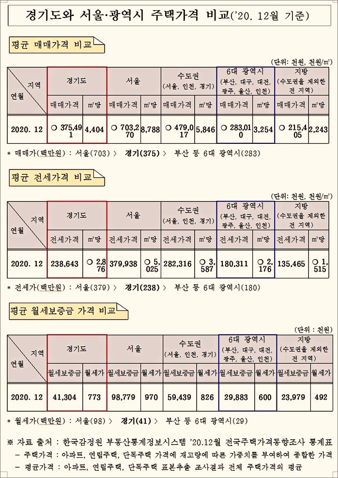 ½ÇÁ¦·Î Áö³ÇØ 12¿ù ¸» ±âÁØ 1§³´ç °æ±âµµ Æò±Õ Àü¼¼°¡°ÝÀº 287¸¸6õ¿øÀ¸·Î ºÎ»ê, ´ë±¸, ´ëÀü, ¿ï»ê, ÀÎõ, ±¤ÁÖ µî ¡®6´ë ±¤¿ª½Ã¡¯ÀÇ 1§³´ç Æò±Õ Àü¼¼°¡°Ý 217¸¸6õ¿øº¸´Ù ¿ÀÈ÷·Á 70¸¸¿øÀÌ ³ô´Ù.