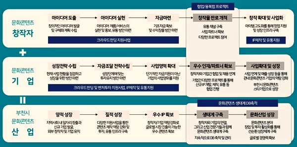 ½Ã ¹®È»ê¾÷Àü·«°ú ½Ç°¨ÄÜÅÙÃ÷ÆÀ¿¡ µû¸£¸é ¡®¹®ÈÄÜÅÙÃ÷ ¼ºÀå Áö¿ø Ç÷§Æû ¿î¿µ»ç¾÷¡¯Àº °ü³» ÄÜÅÙÃ÷ Á¦ÀÛ ±â¾÷°ú âÀÛÀÚÀÇ ¿ì¼öÇÑ ÇÁ·ÎÁ§Æ®¿Í ¾ÆÀ̵ð¾îÀÇ »ç¾÷ȸ¦ À§ÇØ À¯¸Á ÄÜÅÙÃ÷ ¹ß±¼°ú Á¦ÀÛ, ÅõÀÚ, À¯Åë µî ¸ðµç °úÁ¤À» ü°èÀûÀ¸·Î Áö¿øÇÏ´Â »ç¾÷ÀÌ´Ù.