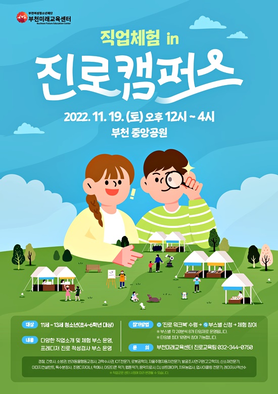 ºÎõ½Ã ¹Ì·¡±³À°¼¾ÅÍ´Â 11¿ù 19ÀÏ(Åä) Á¤¿À(12½Ã)ºÎÅÍ ¿ÀÈÄ 4½Ã±îÁö Áß¾Ó°ø¿ø¿¡¼ 11¼¼~13¼¼ û¼Ò³â(Ãʵî 4~6Çгâ)À» ´ë»óÀ¸·Î ¡®Á÷¾÷üÇè in Áø·ÎÄ·ÆÛ½º'¸¦ °³ÃÖÇÑ´Ù.