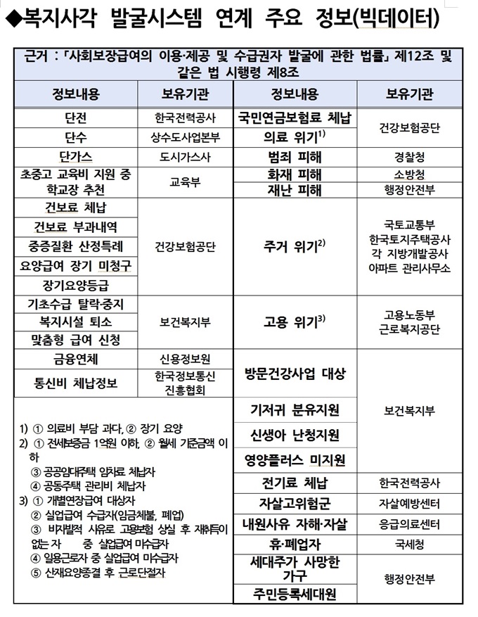 »çȸº¸ÀåÁ¤º¸½Ã½ºÅÛÀ» ÅëÇØ °Çº¸·á ü³³, ±ÝÀ¶ ¿¬Ã¼, Åë½Åºñ ü³³ µî ÃÑ 39Á¾ÀÇ À§±â ¡ÈÄ µ¥ÀÌÅ͸¦ ȸÂ÷º°·Î Á¡°ËÇØ º¹Áö À§±â °¡´É¼ºÀÌ ÀÖ´Â ´ë»óÀÚ¡¤°¡±¸¸¦ ¹ß±¼ÇÏ´Â ³»¿ëÀÌ´Ù.
