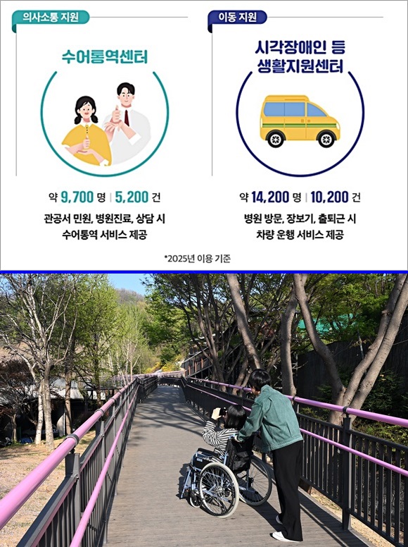 À̿ܿ¡µµ ¡®¼ö¾îÅ뿪¼¾ÅÍ¡¯´Â °ü°ø¼ ¹Î¿ø, º´¿ø Áø·á, »ó´ã µî ´Ù¾çÇÑ »óȲ¿¡¼ ¼ö¾îÅ뿪 ¼ºñ½º¸¦ Á¦°øÇØ Ã»°¢¡¤¾ð¾îÀå¾ÖÀÎÀÇ Á¤º¸ Á¢±Ù°ú »çȸȰµ¿À» µ½°í ÀÖÀ¸¸ç, Áö³ÇØ ¾à 9õ700¸í¿¡°Ô 5õ200°ÇÀÇ ¼ºñ½º¸¦ Á¦°øÇß´Ù.
