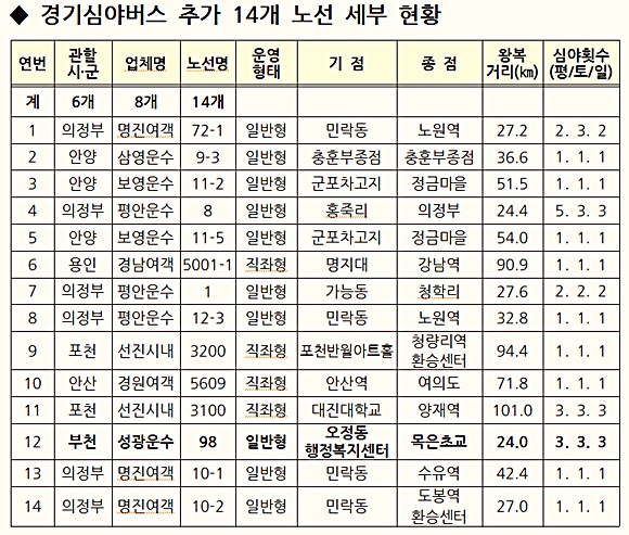 °æ±âµµ´Â ¡®2018³âµµ °æ±â½É¾ß¹ö½º ³ë¼± È®´ë °èȹ¡¯¿¡ µû¶ó ºÎõ¡ê¸ñµ¿(98), ÀÇÁ¤ºÎ¡ê³ë¿ø¿ª(72-1), ¾È¾ç¡ê»ç´ç¿ª(9-3) µî 14°³ ³ë¼±À» Ãß°¡ ¼±Á¤ÇØ 11¿ùºÎÅÍ ¿îÇà¿¡ µé¾î°£´Ù°í 7ÀÏ ¹àÇû´Ù.