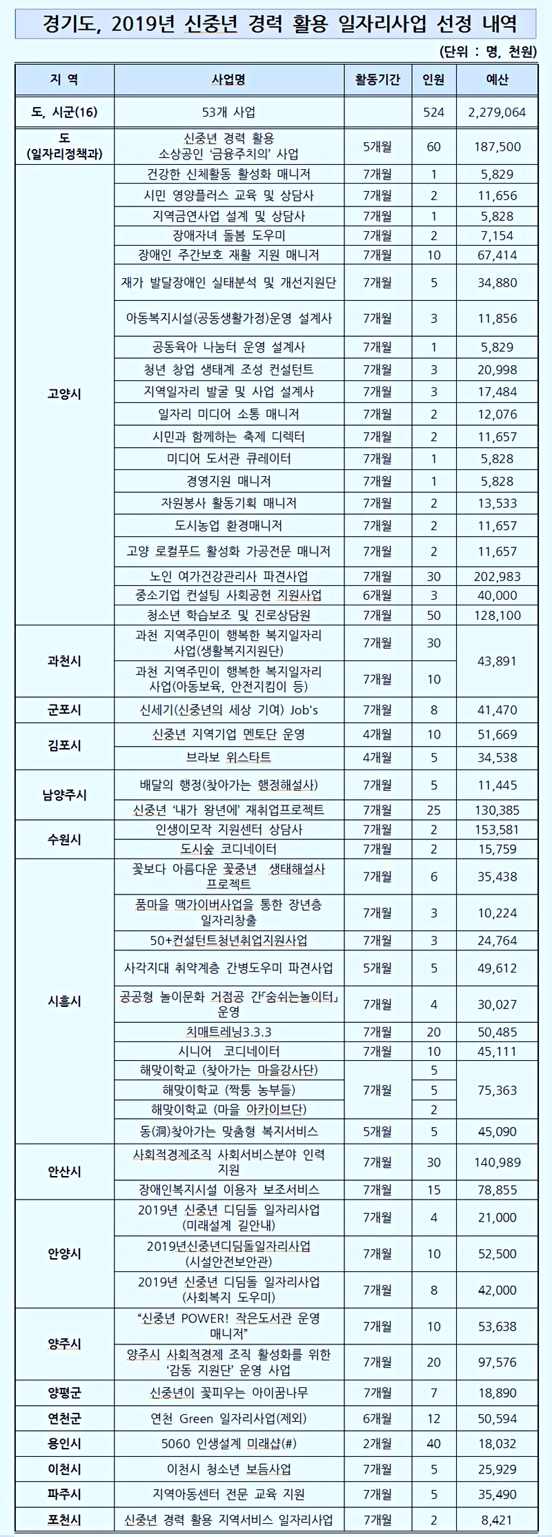 °æ±âµµ ÀÏÀÚ¸®Á¤Ã¥°ú´Â ¡° ¡®½ÅÁ߳⠰æ·ÂȰ¿ë Áö¿ª¼ºñ½º ÀÏÀÚ¸® »ç¾÷¡¯Àº ÀºÅðÇÑ ½ÅÁß³âµé¿¡°Ô ¼Òµæ âÃâÀÇ ±âȸ¸¦, ÁöÀÚü´Â À̵éÀ» Ȱ¿ëÇØ Áö¿ªÇö¾ÈÀ» ÇØ°áÇÏ´Â µî ¸ðµÎ°¡ À©-À©(Win-Win)Çϴµ¥ ¸ñÀûÀ» µ×´Ù¡±¸ç ¡°½ÅÁß³âÀÇ ¼º°øÀûÀÎ Àλý ´Ù¸ðÀÛÀ» À§ÇØ »ç¾÷ ÃßÁø¿¡ ¸¸ÀüÀ» ±âÇϰڴ١±°í ¹àÇû´Ù.