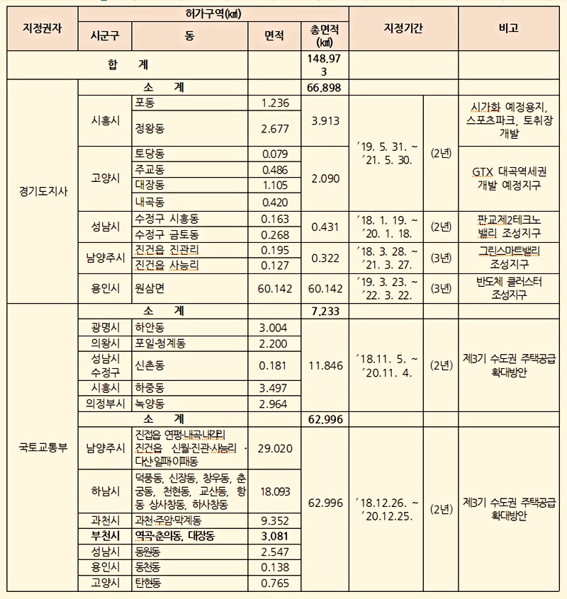 ÀÌ·Î½á °æ±âµµ³»¿¡´Â ÅäÁö°¡°ÝÀÇ ¾ÈÁ¤È¸¦ À§ÇØ ÃÑ 12°³ ½Ã¤ý±º 19°³ Áö¿ª ÃÑ 14¸¸8õ973§´°¡ ÅäÁö°Å·¡Çã°¡±¸¿ªÀ¸·Î ÁöÁ¤µÆ´Ù.