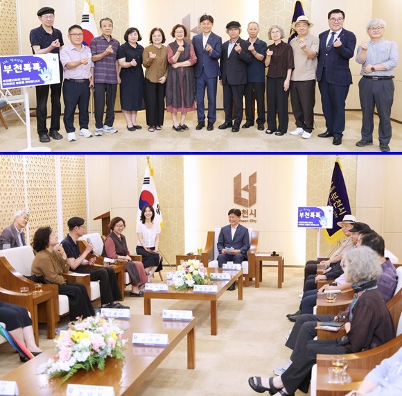 | Á¶¿ëÀÍ ºÎõ½ÃÀå, ºÎõ¹®ÀÎÇùȸ ȸ¿øµé°ú¿Í ¼ÒÅë | |||