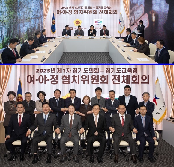 ÇÑÆí, °æ±âµµÀÇȸ-°æ±âµµ±³À°Ã» Á¦1Â÷ ¿©¾ßÁ¤ ÇùÄ¡À§¿øÈ¸ ÀüüȸÀÇ¿¡´Â ÀÓÅÂÈñ ±³À°°¨À» ºñ·ÔÇÑ ±èÁø°æ ÀÇÀå, ÃÖÁ¾Çö ´õºÒ¾î¹ÎÁÖ´ç ´ëÇ¥ÀÇ¿ø, ¹éÇöÁ¾ ±¹¹ÎÀÇÈû ´ëÇ¥ÀÇ¿ø, ±èÁø¼ö Á¦1ºÎ±³À°°¨ µî ÇùÄ¡À§¿øÈ¸ À§¿ø 16¸íÀÌ Âü¼®Çß´Ù.