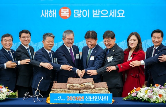 À̾î, ½Å³âÀλçȸ¿¡ Âü¼®ÇÑ ÁÖ¿ä ³»ºóµéÀÌ ÃàÇ϶±À» ÇÔ²² ÀÚ¸£¸ç º¹µÈ 2026³âÀÌ µÇ±â¸¦ ¼Ò¸ÁÇß°í, ±â³äÃÔ¿µÀ» ¸¶Ä£ µÚ »õÇØ Àλ縦 ³ª´³´Ù.