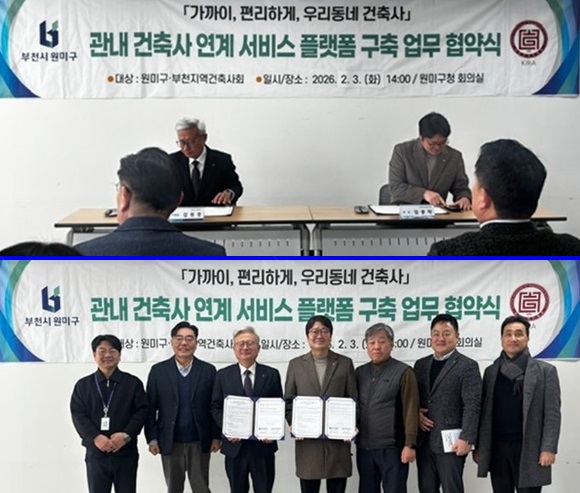 ºÎõ½Ã ¿ø¹Ì±¸´Â ºÎõÁö¿ª°ÇÃà»çȸ¿Í °ü³» °ÇÃà»ç ¿¬°è ¼­ºñ½º Ç÷§Æû ±¸Ãà ¾÷¹«Çù¾àÀ» ü°áÇß´Ù.(»çÁø= ¿ø¹Ì±¸ Á¦°ø)