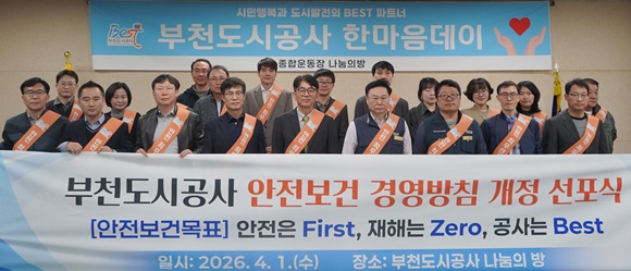 ÇÏÁ¤¼ö ºÎõµµ½Ã°ø»ç »çÀåÀº ¡°À̹ø ¾ÈÀüº¸°Ç °æ¿µ¹æÄ§ °³Á¤Àº Çü½ÄÀûÀÎ ¼±¾ðÀÌ ¾Æ´Ñ ½ÇÁúÀûÀÎ ½ÇÇàÀ» À§ÇÑ °Í¡±À̶ó¸ç ¡°Safety First´Â ´Ü¼øÇÑ ±¸È£°¡ ¾Æ´Ï¶ó ¹Ýµå½Ã ½ÇõµÅ¾ß ÇÒ °æ¿µÀÇ ±âº» ¿øÄ¢À¸·Î ¾ÈÀüÀ» ÃÖ¿ì¼± °¡Ä¡·Î »ï¾Æ ÇöÀå Áß½ÉÀÇ ¾ÈÀü¹®È È®»ê¿¡ Áö¼ÓÀûÀ¸·Î ³ë·ÂÇϰڴ١±°í ¹àÇû´Ù.
