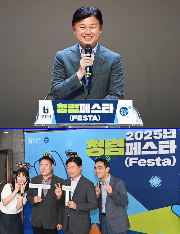Á¶¿ëÀÍ ºÎõ½ÃÀåÀÌ Áö³ 15ÀÏ ¡®2025 û·Å Æä½ºÅ¸¡¯¿¡ Âü¼®ÇØ Àλ縻À»À» Çϰí ÀÖ´Ù. ¾Æ·¡´Â Á÷¿øµé°ú û·Å ´ÙÁü ¹®±¸¸¦ µé°í û·Å ³×ÄÆÀ» ÃÔ¿µÇϰí ÀÖ´Ù.(»çÁø= ºÎõ½Ã Á¦°ø)