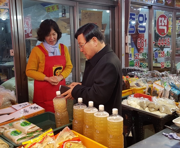¹ÚÇÑ±Ç ¿ÀÁ¤±¸Ã»ÀåÀº 1ÀÏ ¿øÁ¾Áß¾Ó½ÃÀåÀ» ¹æ¹®ÇØ ¡®¼³¸ÂÀÌ ÀüÅë½ÃÀå À庸±â¡¯ Çà»ç¸¦ ½Ç½ÃÇÏ°í »óÀεéÀ» °Ý·ÁÇÏ°í ¾Ö·Î»çÇ×À» µé¾ú´Ù.