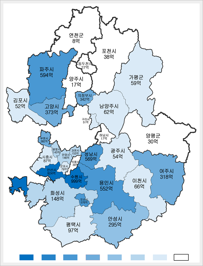 ±×¹Û¿¡ ¡ã¾È¼º½Ã(295¾ï), ¡ã°úõ½Ã(153¾ï), ¡ãȳ²½Ã(148¾ï), ¡ã¾È¾ç½Ã(146¾ï), ¡ã±¤¸í½Ã(142¾ï), ¡ãÆòÅýÃ(96¾ï), ¡ã½ÃÈï½Ã(87¾ï), ¡ã±ºÆ÷½Ã(78¾ï), ¡ãÀÌõ½Ã(65¾ï), ¡ã³²¾çÁÖ½Ã(62¾ï), ¡ã°¡Æò±º(58¾ï), ¡ã±¤ÁÖ½Ã(53¾ï), ¡ã±èÆ÷½Ã(51¾ï), ¡ãÀǿսÃ(39¾ï), ¡ãÆ÷õ½Ã(37¾ï), ¡ã¾çÆò±º(30¾ï), ¡ãµ¿µÎõ½Ã(26¾ï), ¡ãÇϳ²½Ã(17¾ï), ¡ã¾çÁÖ½Ã(16¾ï), ¡ã¿¬Ãµ±º(8¾ï) ¼øÀ¸·Î ³ªÅ¸³µ´Ù.