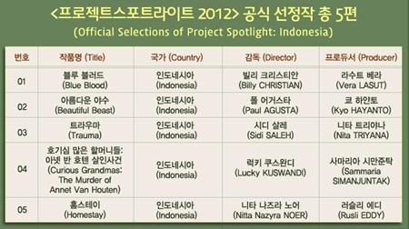 ÃÔ¿µ°¨µ¶À¸·Î Ȱµ¿Çؿ ½Ãµð »ì·¹(Sidi SALEH)ÀÇ ½É¸®½º¸±·¯ <Æ®¶ó¿ì¸¶>(Trauma)¿Í ¾Æ½Ã¾ÆÆÛ½ÃÇÈ¿µÈÁ¦¿¡¼ ¼Ò°³µÈ ´ÙÅ¥¸àÅ͸® <¿öÅ· °É>(Working Girl)ÀÇ °¨µ¶ ´ÏŸ ³ªÁî¶ó ³ë¾î(Nitta Nazyra NOER)ÀÇ ½½·¡¼Å ¿µÈ <Ȩ½ºÅ×ÀÌ>(Homestay)µµ ±â´ëµÇ´Â ÇÁ·ÎÁ§Æ®´Ù.