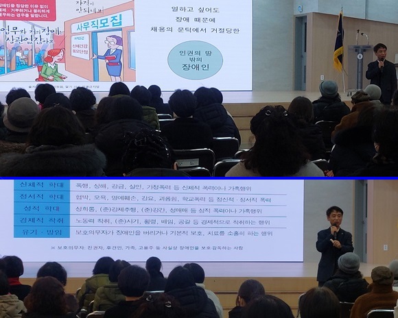 °ûº´±Ç ºÎõ½ÃÀå¾ÖÀÎÀαǼ¾ÅÍÀåÀÌ Áö³­ 3ÀÏ Àå¾ÖÀΠȰµ¿Áö¿ø»çµéÀ» ´ë»óÀ¸·¯ ÀαDZ³À°À» ½Ç½ÃÇϰí ÀÖ´Ù.(»çÁø= ºÎõ½Ã Á¦°ø)