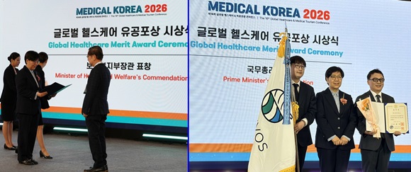 ÀÌ¿Í ÇÔ²² ºÎõ½Ã ¿Ü±¹ÀΠȯÀÚ À¯Ä¡»ç¾÷ÀÚ ¢ß¿Í¿ìº¸½ºµµ 2026 ±Û·Î¹ú ÇコÄɾî À¯°øÀ» ÀÎÁ¤¹Þ¾Æ ±¹¹«ÃѸ®»óÀ» ¹Þ¾Ò´Ù.