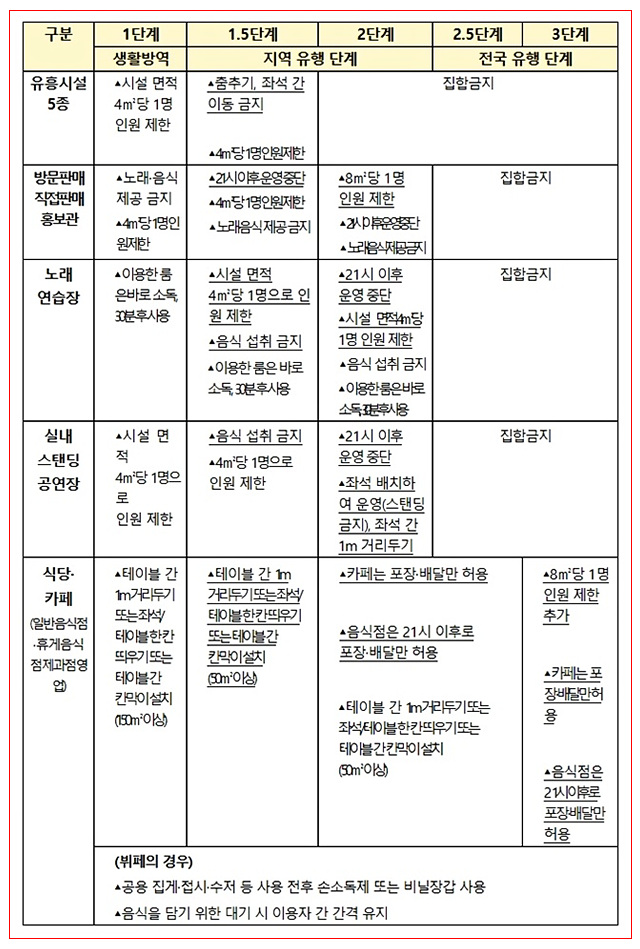 Áö¿ª À¯ÇàÀÌ ±Þ¼Óµµ·Î È®»êµÇ±â ½ÃÀÛÇÏ´Â 2´Ü°è¿¡¼´Â ÇØ´ç ±Ç¿ª¿¡ ¼ÒÀçÇÑ Å¬·´ µî À¯Èï½Ã¼³ 5Á¾(Ŭ·´ µî À¯ÈïÁÖÁ¡, ´Ü¶õÁÖÁ¡, ÇåÆÃÆ÷Â÷, °¨¼ºÁÖÁ¡, ÄݶóÅØ)Àº ÁýÇÕ±ÝÁöÇϸç, ½Ç³» ½ºÅĵù °ø¿¬Àå µî ÀÌ¿Ü ÁßÁ¡°ü¸®½Ã¼³Àº 21½Ã ÀÌÈÄ¿¡ ¿î¿µÀ» Áß´ÜÇÏ´Â µî ¹æ¿ª Á¶Ä¡¸¦ °ÈÇÑ´Ù.