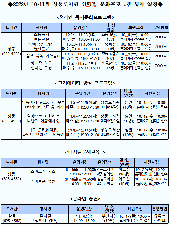 ºÎõ½Ã¸³ »óµ¿µµ¼°üÀº ¾î¸°ÀÌ, û¼Ò³â, ¼ºÀÎ µî ´Ù¾çÇÑ ¿¬·Éº° ¸ÂÃãÇü µ¶¼ ¹× ¹Ìµð¾î Å©¸®¿¡ÀÌÅÍ ±³À° ÇÁ·Î±×·¥À» ¿î¿µÇÑ´Ù.